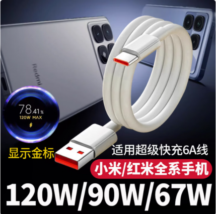 亿智适配原装适配原装Type-c数据线120w闪充11/12/10快充14/13K30k40k50K60K70手机note67typc 67W闪充线 1.5m